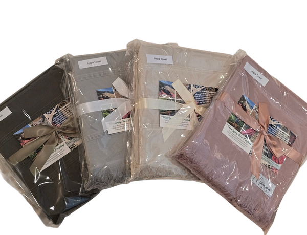 Easy gifting for towel/blanket luxury! All towels and blankets come wrapped in satin ribbon with a care instruction postcard. Gift bags sold separately